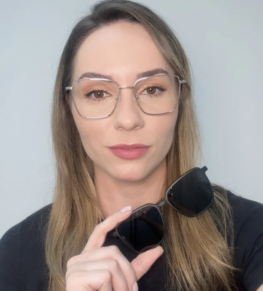 A lente solar é fixada atravéz de imãs nas laterais da armação.