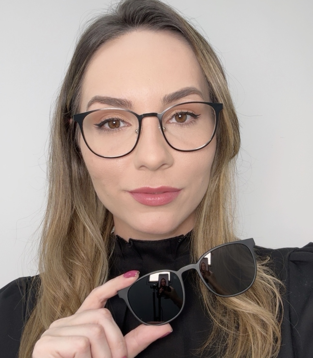 A lente solar é fixada atravéz de imãs nas laterais da armação.