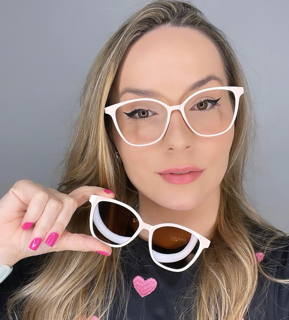 A lente solar é fixada atravéz de imãs nas laterais da armação.