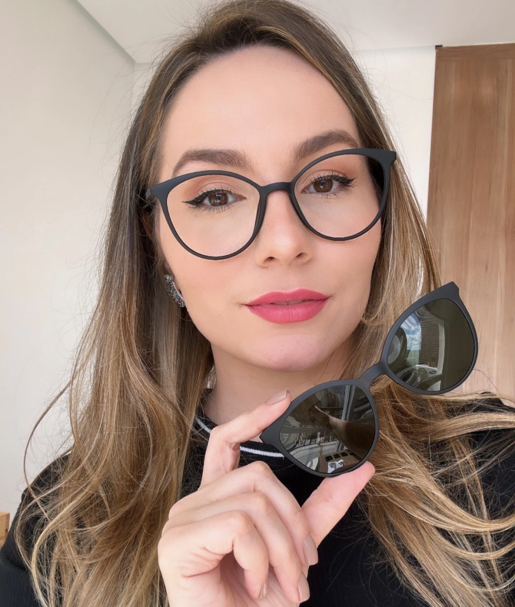 A lente solar é fixada atravéz de imãs nas laterais da armação.